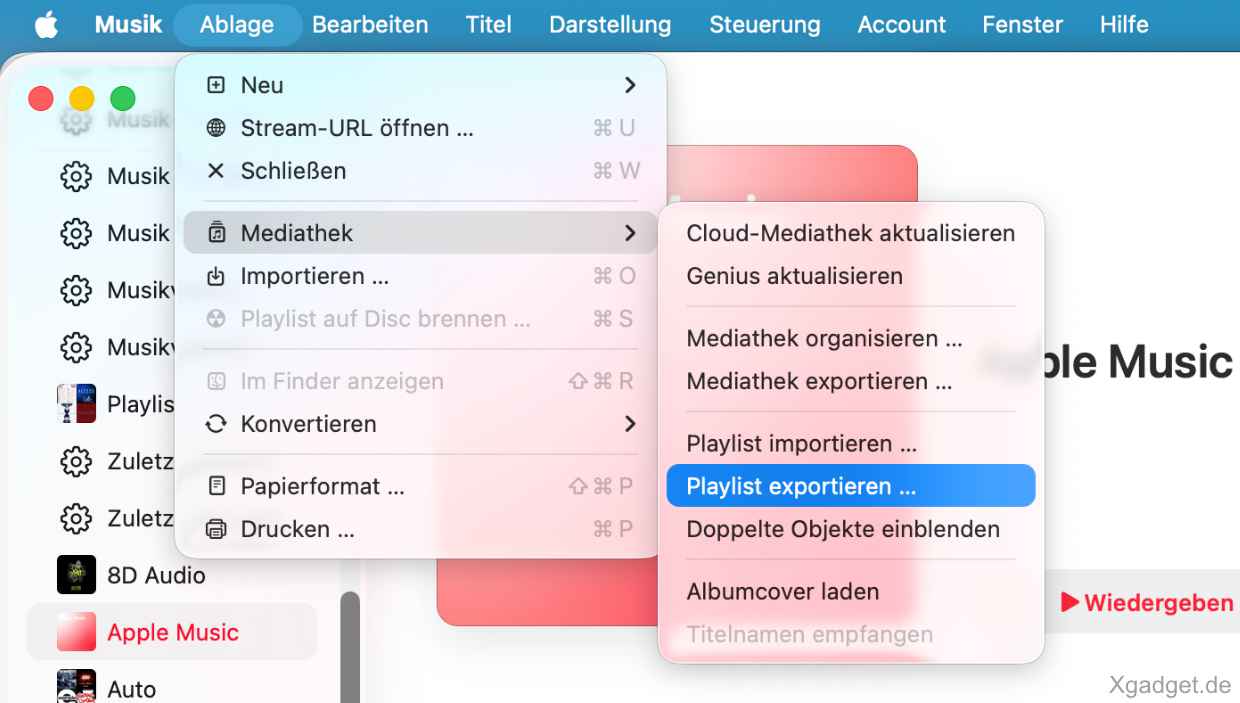 Playlist exportieren via Apple Musik App