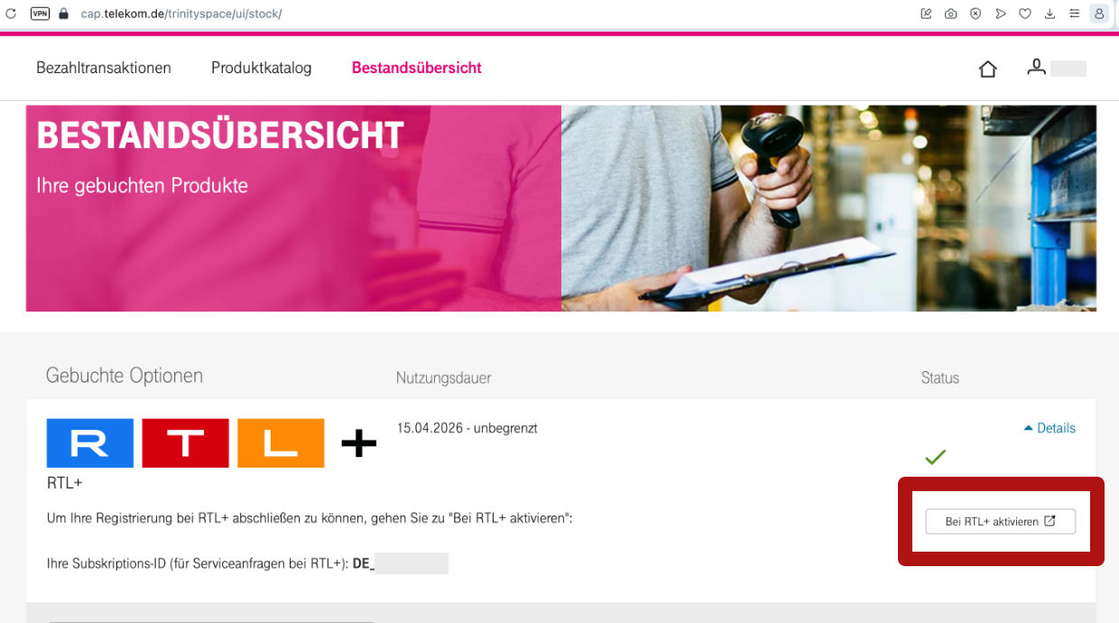 • Ihr habt einen aktiven MagentaTV-Vertrag, in dem RTL+ als Bestandteil enthalten ist (z. B. MagentaTV Smart, SmartStream oder ein vergleichbarer Tarif mit RTL+ Inklusivpaket).