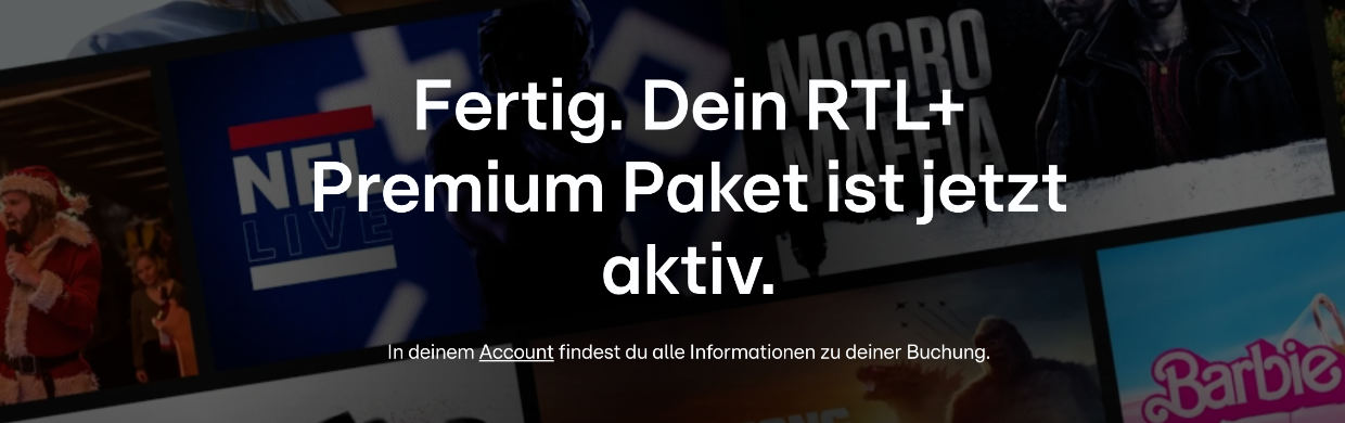Die Seite zeigt euch jetzt die Meldung: "Fertig. Dein RTL+ Premium Paket ist jetzt aktiv."