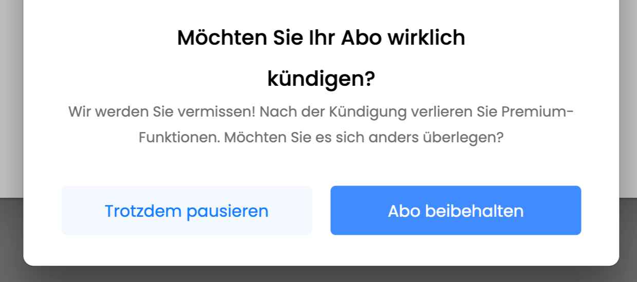 Um den Kündigungsprozess fortzusetzen, klickst du in diesem Fenster auf den Button „Abo pausieren“: