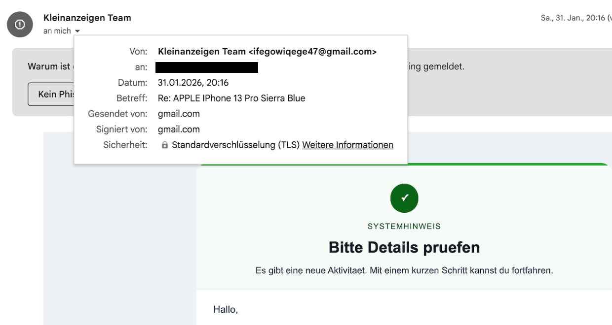 Kleinanzeigen Phishing Mails erkennen