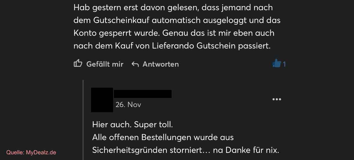 So wurde ende November 2025 etwa im Kommentarbereich von MyDealz ebenfalls von Kontosperrung sowie Stornierungen berichtet – dabei ging es zwar nicht direkt um Amazon Guthaben als Geschenkkarte, aber um Lieferando Gutscheine die ebenfalls auf Amazon mit dem wohl gleichen System vertrieben werden: