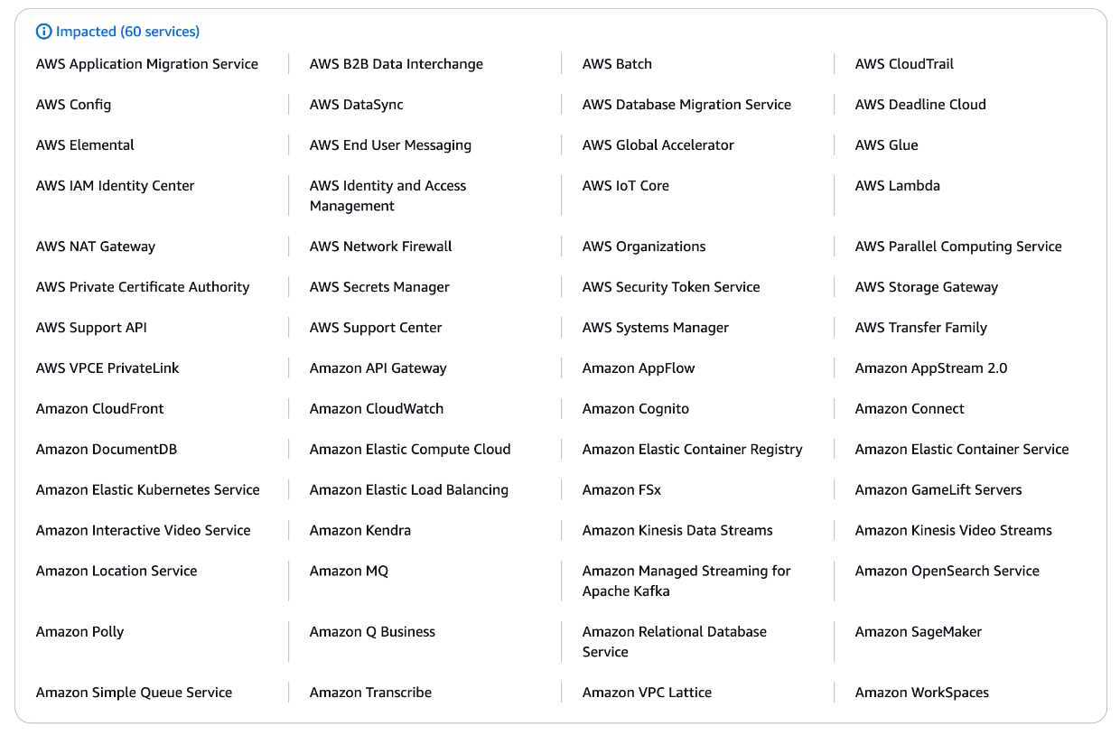 Laut Amazons Service-Status-Seite liegt das Problem in der Region US-EAST-1 (North Virginia), wo eine Störung der Datenbank DynamoDB mehrere abhängige Systeme in die Knie zwingt, mittlerweile sind 60 AWS-Dienste betroffen wie die offizielle Status-Webseite des Unternehmens verrät.