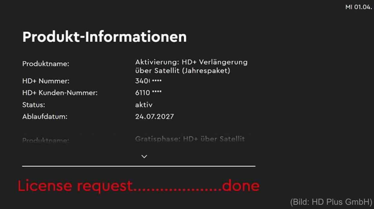 Ich komme schon gar nicht mehr in die Produktinformationen, bzw in die HD+ – Einstellungen.