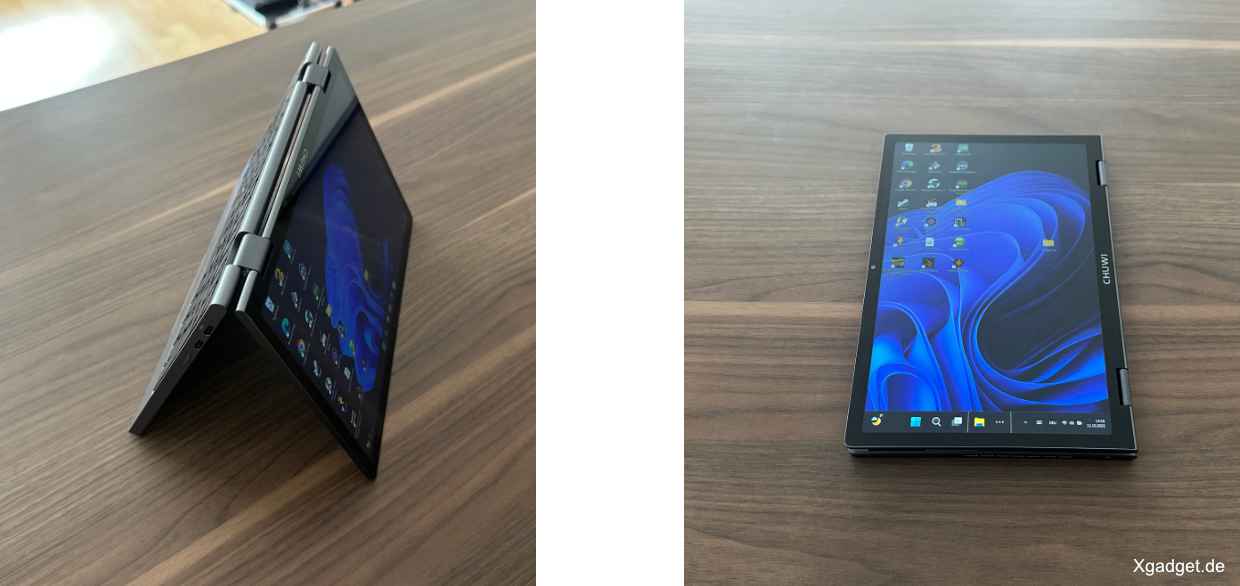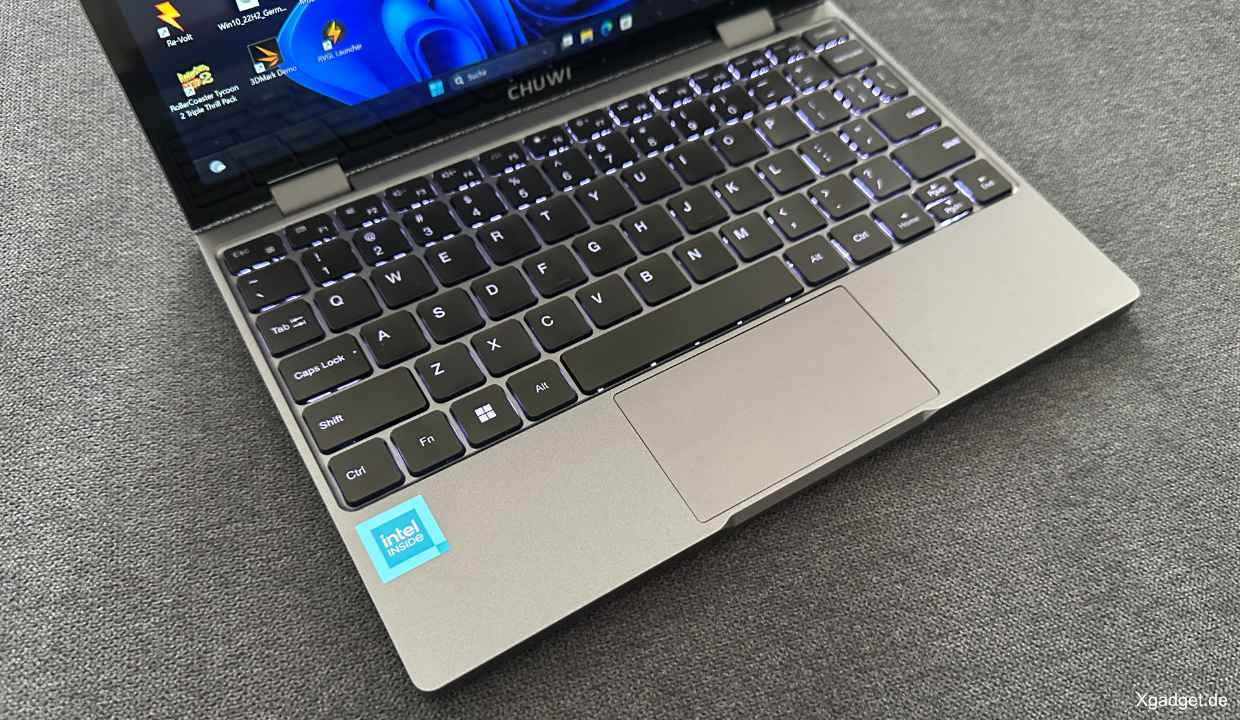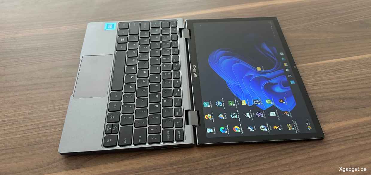 Das CHUWI MiniBook X präsentiert sich als spannender Begleiter für unterwegs, da es extrem handlich, leicht und mit einer überraschend hochwertigen Haptik daherkommt. Das Touchdisplay reagiert recht präzise auf Eingaben und lässt sich dank des 360°-Scharniers auch vollständig umklappen, wodurch das Gerät nahtlos in einen Tablet-Modus übergeht und so als Convertible genutzt werden kann. Windows 11 erkennt diese Veränderung übrigens automatisch und passt die Benutzeroberfläche entsprechend an.
